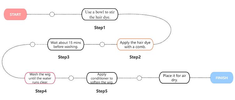 First of all, use a bowl to stir the hair dye thoroughly, after stirring it, you can start to slowly apply it to the wig with a comb, when it is completely applied, you need to wait about 15 minutes before taking it to wash, during which time the hair needs to fully absorb the hair dye.