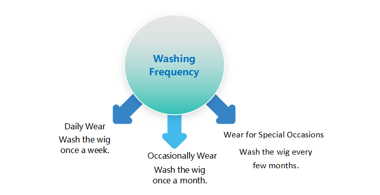 The appropriate frequency of cleaning the wig under different use scenarios.