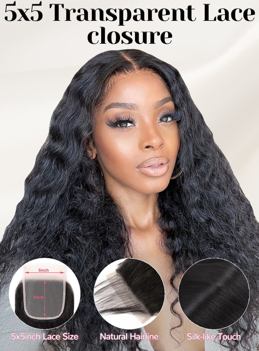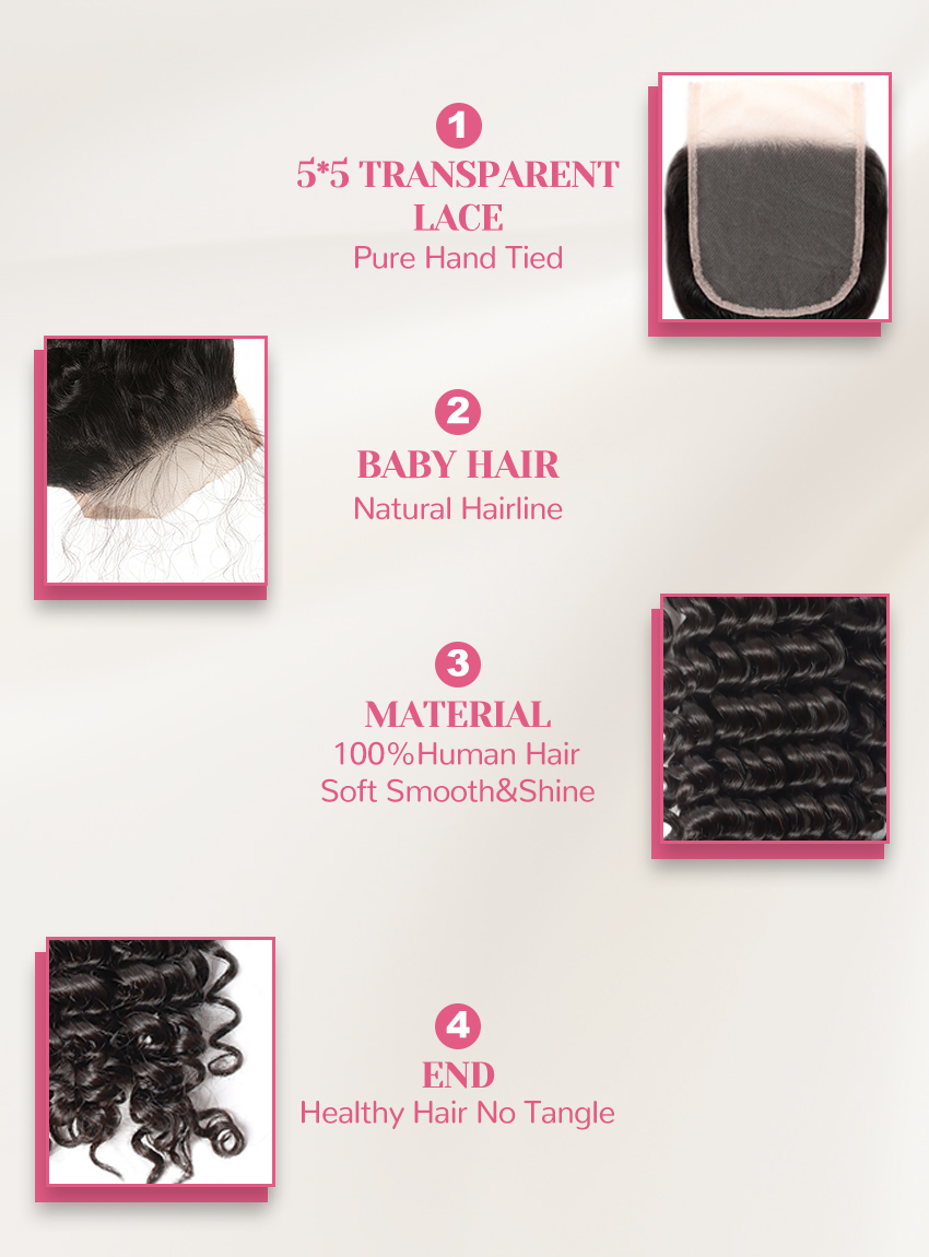 XYS Hair Deep Curly Hair 5x5 Transparent Lace Closure With Natural Hairline