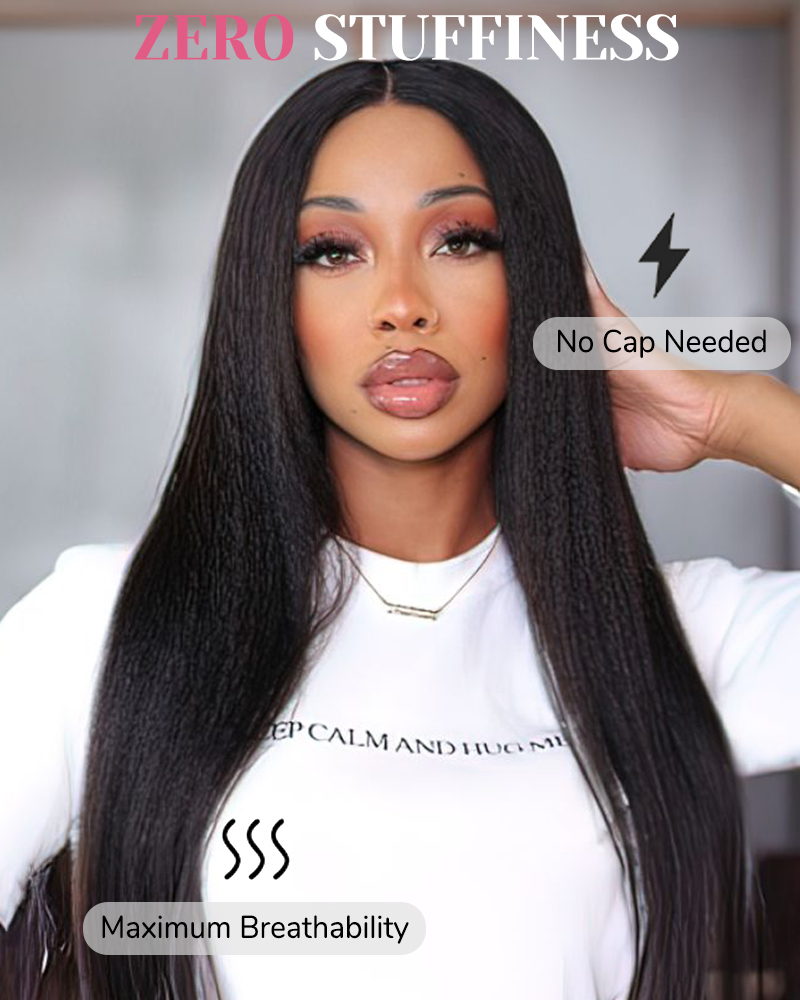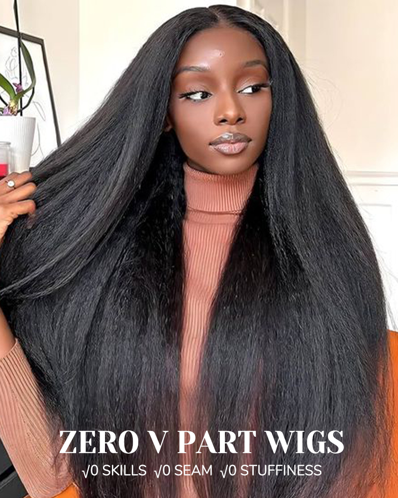 XYS Hair Kinky Straight Hair V Part Human Hair Wig Protective Style